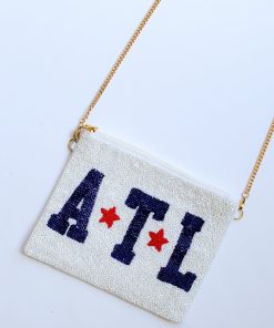 Be ready for game days with the ATL Star Beaded Crossbody Bag! This crossbody is designed with a beaded front with “ATL” + stars. It features a functional zipper closure and a long gold chain removable strap. It also has two sidewall pockets on the inside! Pair the ATL Star Beaded Crossbody Bag with your game day outfit! Beaded “ATL” with Stars Gold Hardware Removable Strap Functional Zipper Closure Lined Inside Sidewall PocketsOne Size | Length 6″ | Width 8″ | Crossbody Strap Length 22″